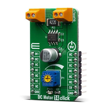 All Click Boards™ come with full software support in MikroElektronika compilers and mikroSDK. Example code and libraries simplify software development so you can focus on programming the essential functions.- DC Motor 14 Click Board™