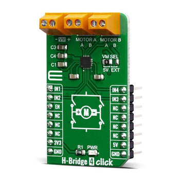 All Click Boards™ come with full software support in MikroElektronika compilers and mikroSDK. Example code and libraries simplify software development so you can focus on programming the essential functions.- H-Bridge 4 Click Board™