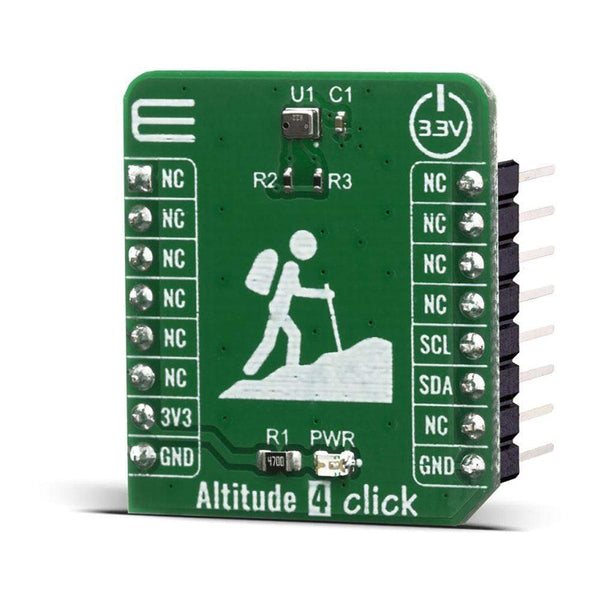 | On-board modules | The Altitude 4 Click Board™ uses the NPA-201 IC, an absolute pressure sensor with digital output for low-cost applications, from Amphenol Advanced Sensors. |