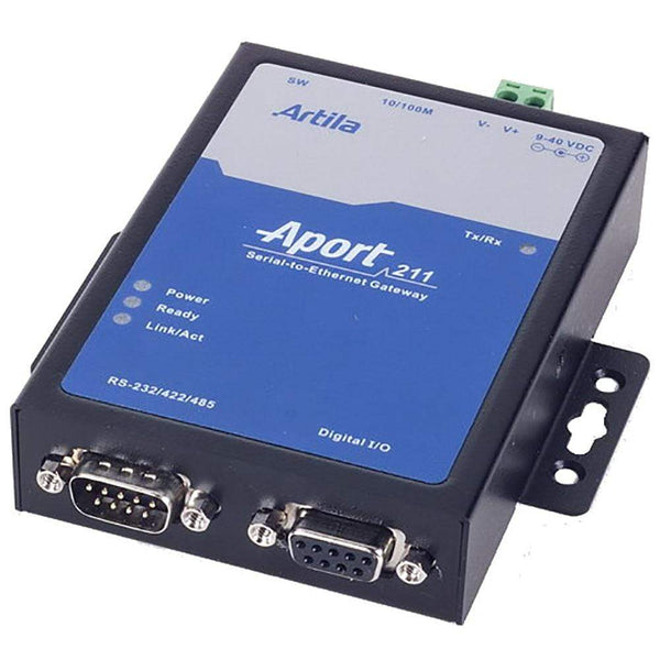 The Aport-211S is an easy-to-use Serial-to-Ethernet gateway which is designed for applications requiring quick, reliable and seamless integration of existing RS-232C/RS-422 or RS-485 devices to an Ethernet network. The Aport-211S provides a transparent data channel between serial device and the TCP/IP network, so that the serial device can be accessed by using standard TCP/IP protocols. The Ethernet port will operate at 10/100Mbps and the speed is auto-selected. An eight bit TTL-level bidirectional port is also available.
