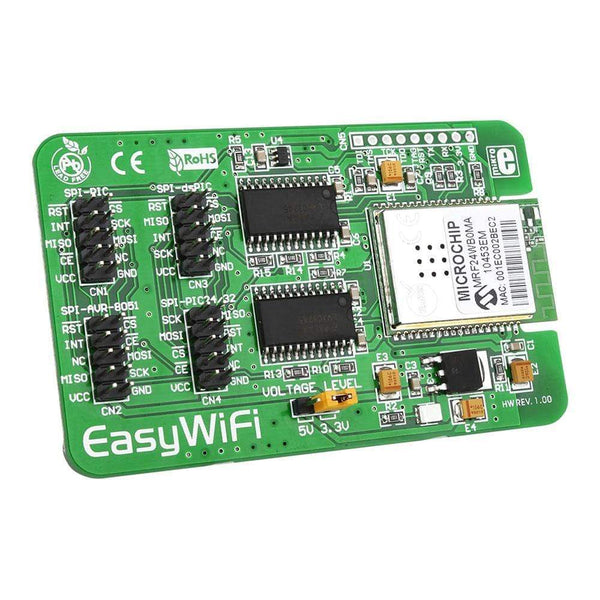 The MRF24WB0MA aboard EasyWiFi board is designed to use Microchips TCP/IP software stack. It has an integrated driver that implements the API that is used in the modules for command and control as well as for management and data packet traffic. The Microchip TCP/IP software stack is available in the Microchip Application Libraries for free download.