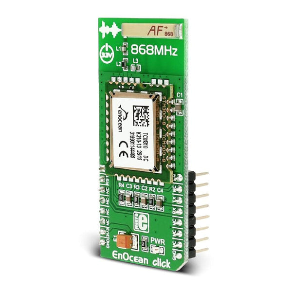 EnOcean Click Board™ is a result of the collaboration between EnOcean, the world leader in energy harvesting wireless technology, and MikroElektronika, producer of entire development toolchains for all major microcontroller architectures. This add-on board is the 164th addition to MikroElektronikas line of Click Board™s.