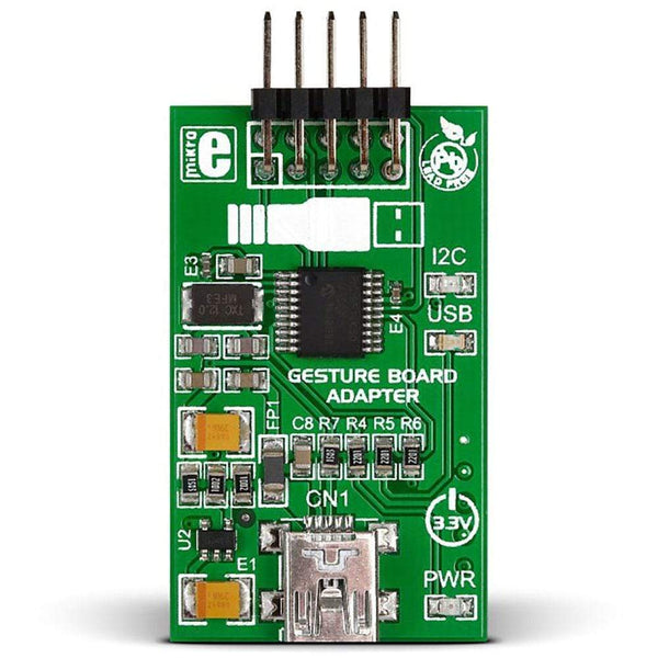 This I2C to USB adapter is specifically built for connecting our Gesture Board to a PC, allowing you to explore the possibilities of Microchips MGC3130 3D gesture recognition controller. The adapter is also available already paired with Gesture board. For that option, see Gesture Board PC kit on the Gesture Board product page.