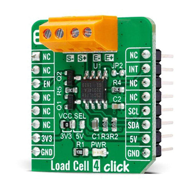 The Load Cell 4 Click Board™ is designed to operate with both 3.3V and 5V logic voltage levels selected via the VCC SEL jumper. It allows for both 3.3V and 5V capable MCUs to use the I2C communication lines properly. However, the Click board™ comes equipped with a library that contains functions and an example code that can be used, as a reference, for further development.