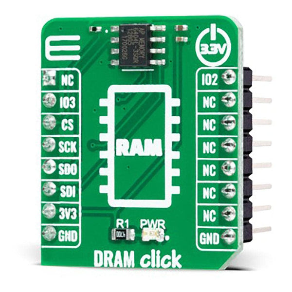 The DRAM Click Board™ is based on the APS6404L-3SQR, a 64Mb PSRAM (Pseudo-Static RAM) memory with an SPI/QPI interface from AP Memory. Organized as 8M x 8 bits each, this memory also has a page size of 1024 bytes alongside high speed and high performance. It also incorporates a seamless self-managed refresh mechanism specially designed to maximize the performance of memory read operation (it does not require the support of DRAM refresh from the system host). It is most suitable for low-power and low-cost portable applications.