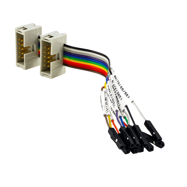 The Total Phase TP240212 cable is for connecting the Aardvark™, Beagle™ or Cheetah™ to header pins or IC legs on your target boards.