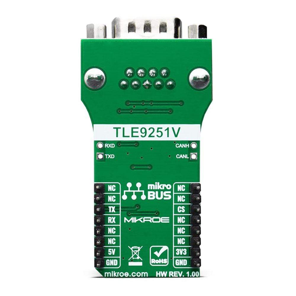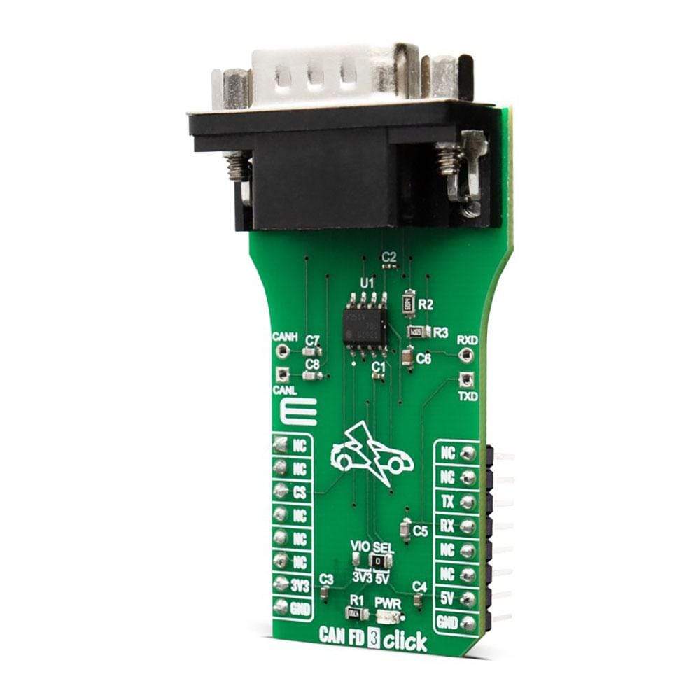 The CAN FD 3 Click Board™ is an add-on board based on TLE9251V CAN network transceiver, designed for HS CAN network up to 5 Mbit/s in automotive and industrial applications. As an interface between the physical bus layer and the CAN protocol controller, the TLE9251V drives the signals to the bus and protects the microcontroller against interferences generated within the network. Given all the features its components offer, the CAN FD Click is best used for infotainment applications, gateway modules, body control modules (BCM) or engine control units (ECUs).