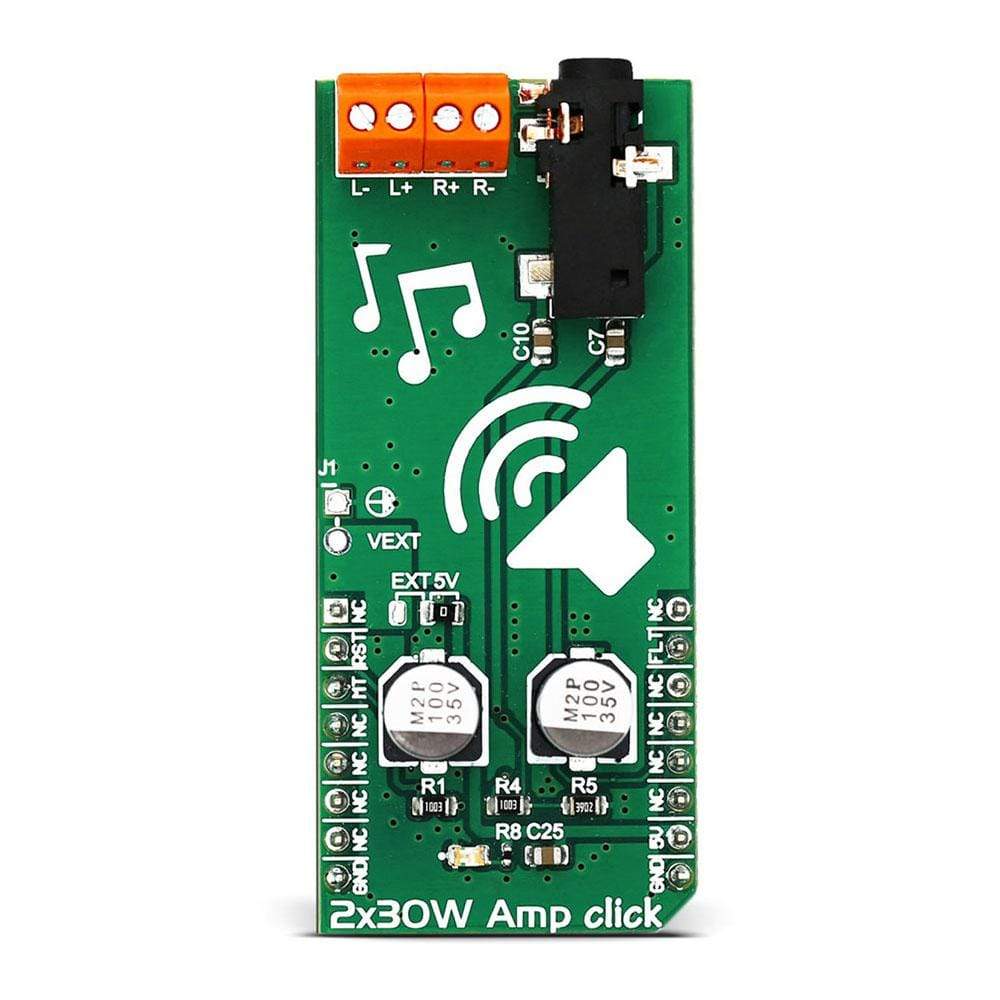 Enjoy seamless audio amplification with this versatile click board that offers both performance and protection in a compact design. Whether you're an audio enthusiast or a professional in need of reliable amplification, the 2 x 30W Amp Click Board is your go-to solution.