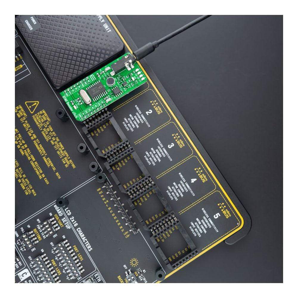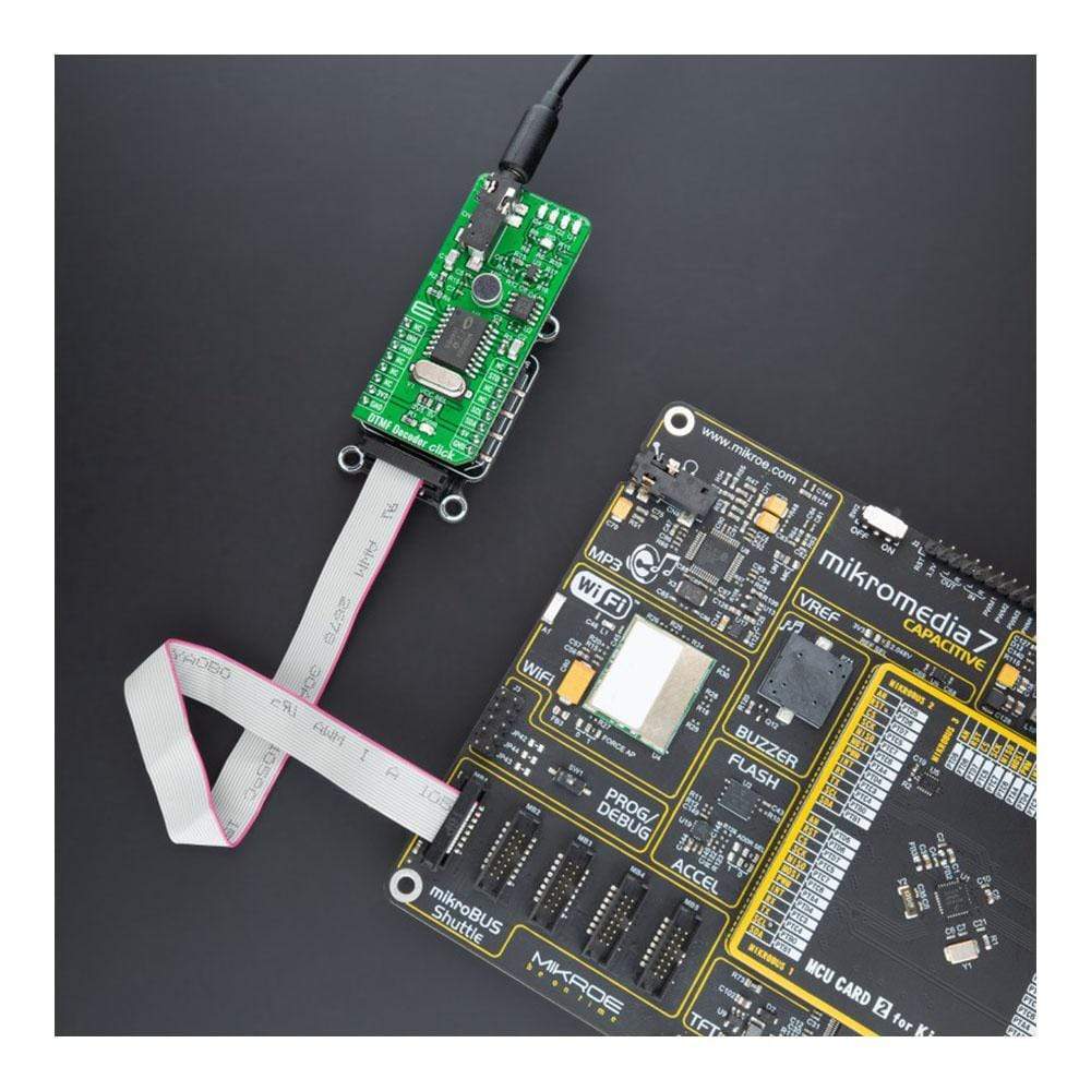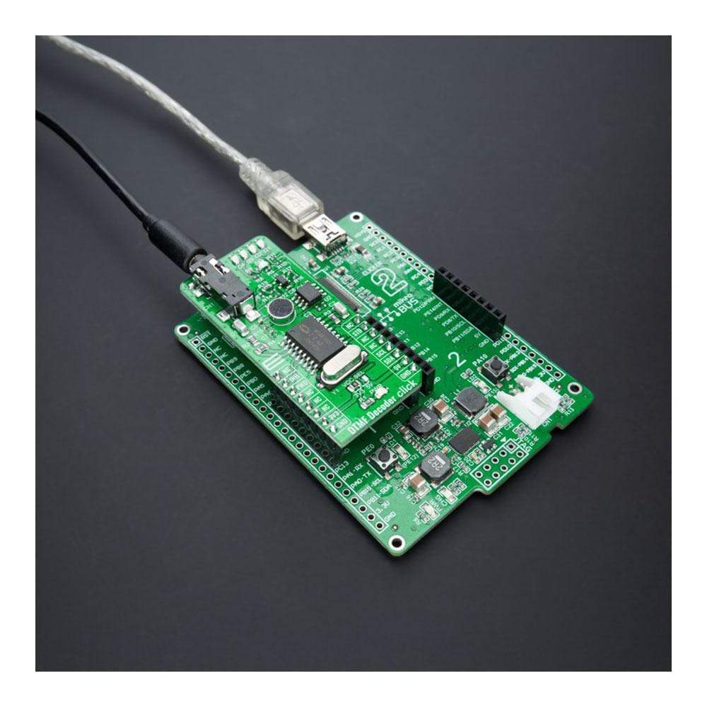 The DTMF Decoder Click Board™ is supported by a mikroSDK compliant library, which includes functions that simplify software development. This Click Board™ comes as a fully tested product, ready to be used on a system equipped with the mikroBUS™ socket.