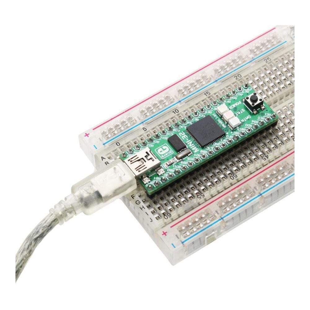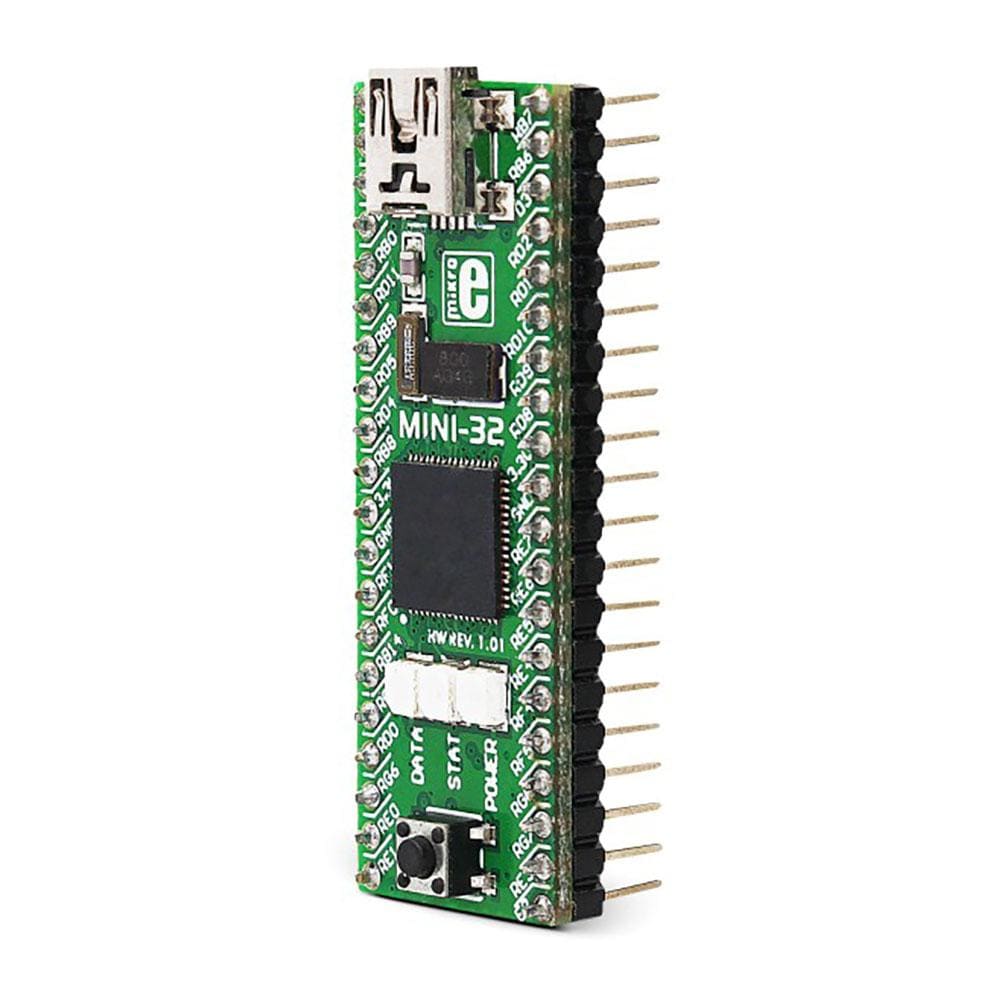 The MINI-32 for PIC32MX is a small development board containing the PIC32MX534F064H microcontroller. It operates on a 3.3V power supply. An onboard voltage regulator allows the board to be powered directly from the USB cable. Comes pre-programmed with a USB bootloader.