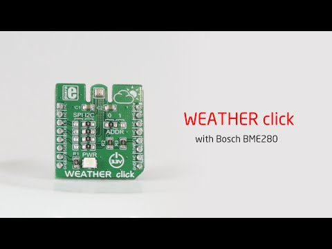 The Weather Click Board™ carries BME280 integrated environmental unit from Bosch. It's a sensor that detects humidity, pressure, and temperature, specifically designed for low current consumption and long-term stability. The click is designed to work on a 3.3V power supply. It communicates with the target microcontroller over SPI or I2C interface.