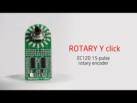The Rotary Y Click Board™ carries a 15-pulse incremental rotary encoder with detents, surrounded by a ring of 16 yellow LEDs. It's a perfect solution for adding a precision input knob to your design.