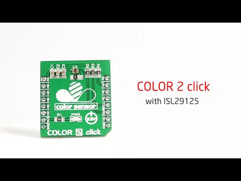 Featuring an integrated ADC, the Color 2 Click Board™ rejects 50Hz and 60Hz flicker from artificial light sources. Along with that, the ISL29125 chip has an IR blocking filter, which means it can reliably operate under dark glass covers. The Color 2 Click Board™ communicates with the target microcontroller through the MikroBUS I2C interface (SCL and SDA pins). A programmable interrupt pin provides additional functionality. It works using a 3.3V power supply only.
