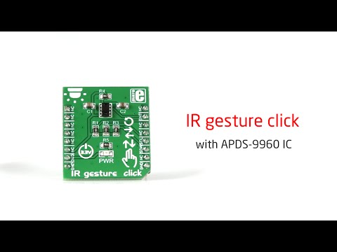 The IR Gesture Click Board™ is a mikroBUS add-on board that enables contactless gesture recognition, along with ambient light and proximity sensing capabilities with the APDS-9960 IC from Avago Technologies.