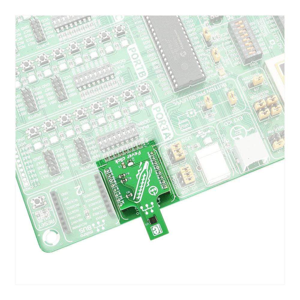Applications | The Fever Click Board™ is a perfect solution for development of health-related applications. It can be used either for monitoring of the body temperature, or it can be simply set to alert about ""fever – no fever"" states. |