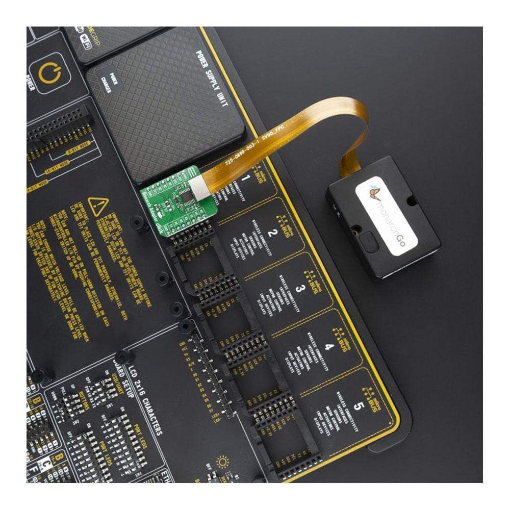 The Monarch Adapter Click Board™ is used to connect compatible Monarch Go LTE-M modems from Sequans to your development board or prototype device. This Click adapter provides a connection to the cloud server with AT commands. The Monarch Go LTE-M modem component with embedded antenna is perfectly suited for a broad range of IoT applications, including telemetry, vending machines, agriculture sensor applications, asset and transportation trackers, hardware tools, and home security monitoring applications.
