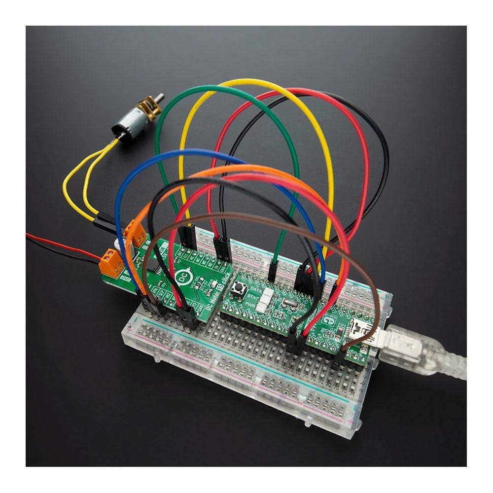 The DC Motor 15 Click is supported by a mikroSDK compliant library, which includes functions that simplify software development. This Click Board™ comes as a fully tested product, ready to be used on a system equipped with the mikroBUS™ socket.